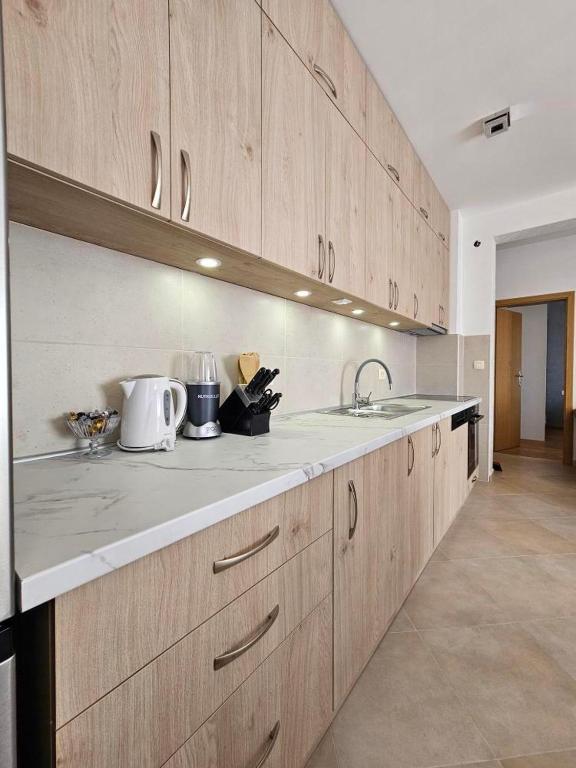A one-bedroom apartment in the Topla district of Herceg Novi comprising a living room, terrace, and balcony within walking distance of the beach. Free WiFi, air conditioning, and free on-site private parking are all available. The property is pet-friendly and includes family rooms throughout the unit.
