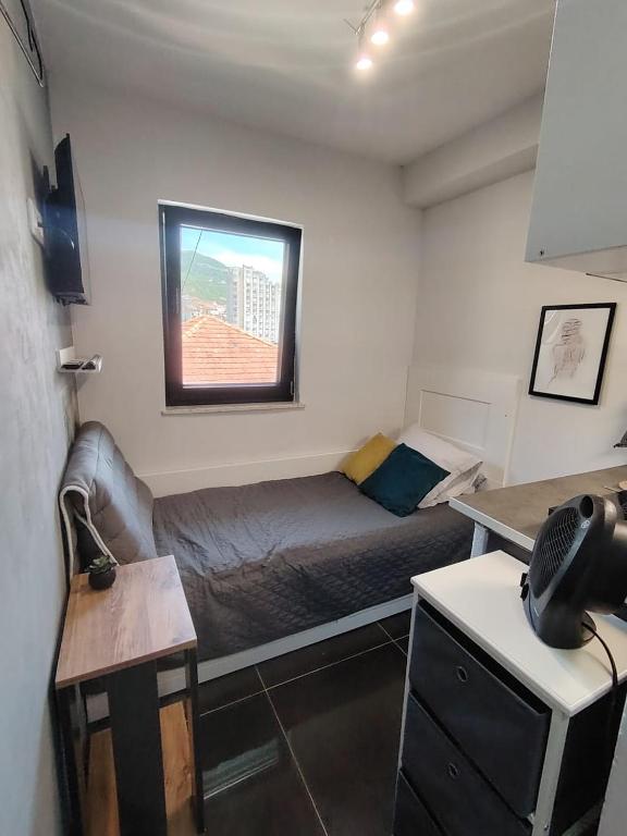 A compact one-bedroom apartment with a bathroom, offering garden and mountain views from within the unit. Free WiFi is available and the property is within walking distance of the beach. The apartment is arranged as a self-contained residential unit with standard fittings and furnishings throughout.