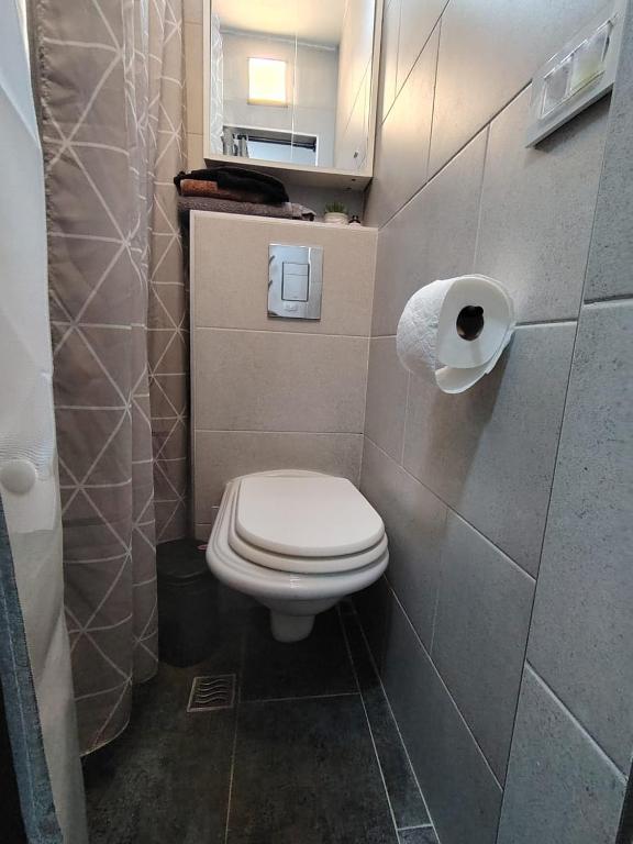 The kitchenette is fully equipped with a refrigerator, stovetop, and standard kitchenware for self-catering use. A washing machine, shower, and TV are all installed within the unit. Standard residential furnishings are provided throughout all areas of the apartment.