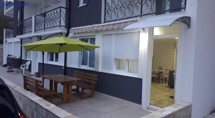 A 58 square metre private unit arranged for residential stays, positioned directly along the shoreline with open sea views. The property includes a balcony, terrace, and garden areas designed for outdoor use. Free on-site parking and free WiFi are available, and airport transfer can be arranged on request.