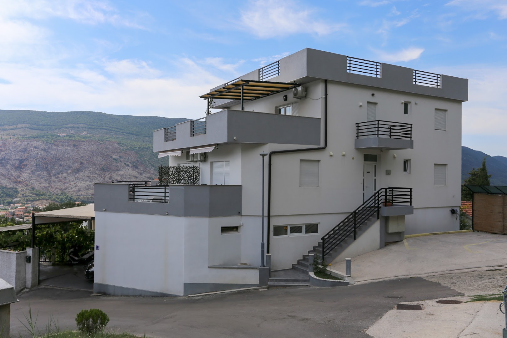 The property consists of apartment units arranged within a residential building offering terrace access and outdoor seating areas. Some units include balconies or paved patios with views toward the sea or surrounding mountains. Free WiFi and free on-site private parking are available. Family and non-smoking rooms are designated.
