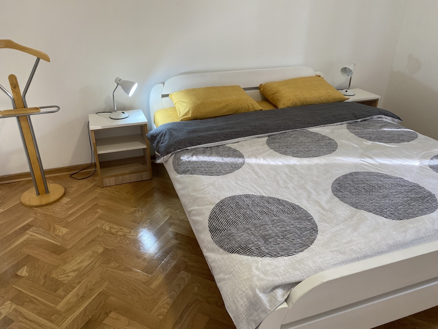 The apartment consists of one bedroom, a living room, and one private bathroom with a shower and hairdryer. A fully equipped kitchen includes a refrigerator for self-catering use. Interior amenities include air conditioning, free WiFi, and provided towels and bed linen. The property allows pets and supports family stays.