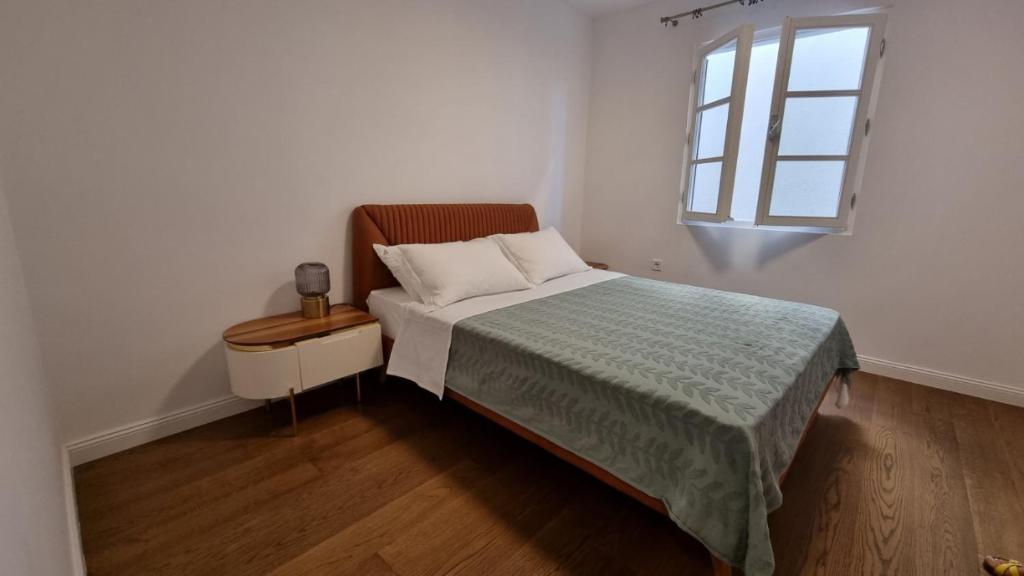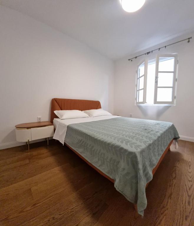 The interior of each unit features a fully equipped kitchen including a refrigerator, cooktop, washing machine, and dishwasher. A dining area, sofa bed, and TV are arranged within the living space. Standard residential furnishings are installed throughout each apartment.
