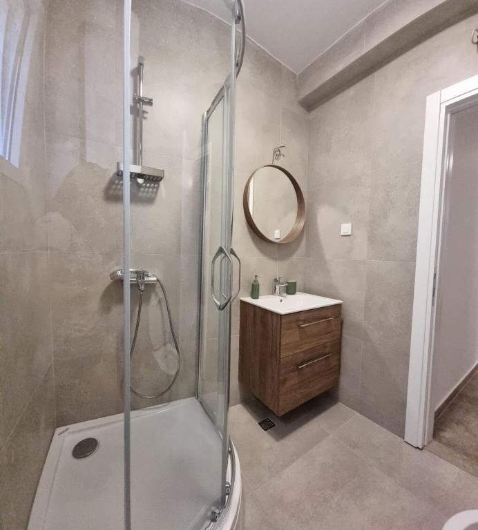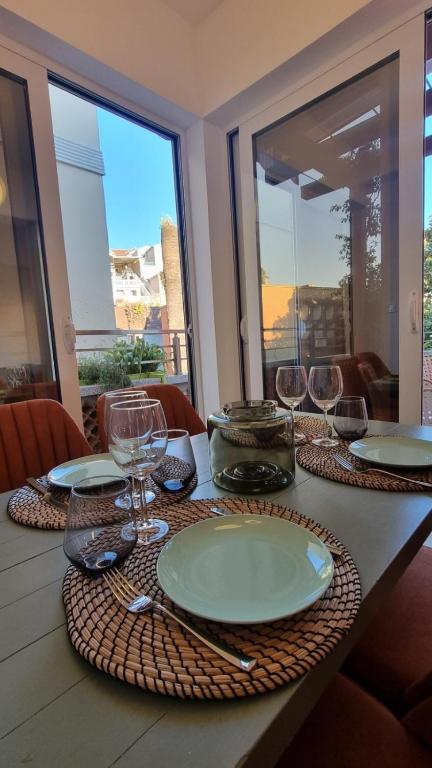 A residential apartment property arranged within a garden setting, with individual balconies and a shared terrace accessible from each unit. Air conditioning and free WiFi are provided throughout the property. Each apartment includes a private bathroom with standard fittings and toiletries, and the property is within walking distance of the beach.