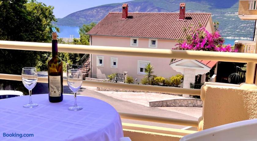 The accommodation is a 60 square metre apartment arranged as an entire private unit. It includes one bedroom and a separate living room within a residential setting. A balcony provides views toward the sea. Free on-site parking is available.